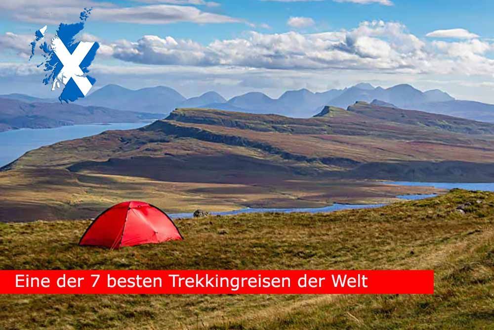 Trekking auf der Isle of Skye - eine der sieben Touren weltweit die Du gemacht haben solltest. Unvergesslich: Die Nacht am "Old Man of Storr". Highlights: Rubha Hunish - Old Man of Storr - Portree - Camasunary Bay - Sligachan - Broadford - Trotternish Ridge